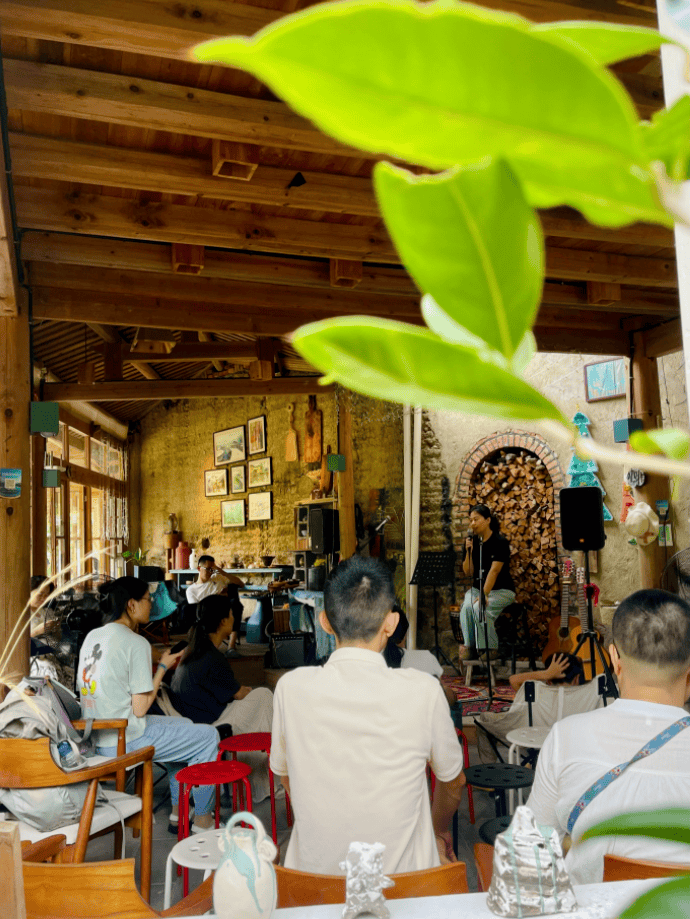 从10年前的艺术乡建开始,龙潭村、四坪村等村子陆续吸引了老村民返乡,也吸引了很多外地人在这里从事各种喜爱的事业而成为新村民,2022年,四坪村还在全国首创提出“云村民”。在龙潭村的警务室里,记者见到了辅警小倩,她是返乡青年,却常和新村民们打成一片。她既可说是老村民里的“新村民”,也是新村民里的“老村民”。过了一会儿,我们又相聚在了新村民思林的民宿边的银杏树下。她回忆:“数字游民周之前,讲真的,他们像来薅羊毛的。活动要来百十号人,组织者到处砍价。但活动开始后,村里每个空间都有活动,走进去一个就很热闹,有的活动持续到后半夜。”仟一在边上补充:“我就是那个经常玩到两三点的。就因为聊得好,所以被留下来负责设计第138号。”