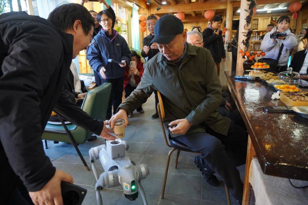 2025年11月,四坪村的乡建DAO线下工作站,机器狗正为大家送咖啡。 乡建DAO供图