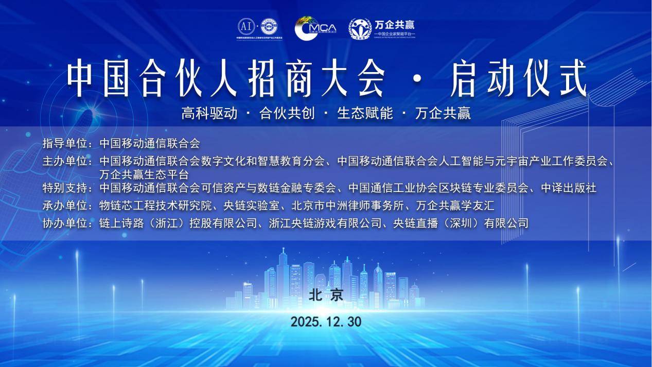 百家乐,百家乐平台,百家乐官方网站,百家乐在线,百家乐网址,百家乐平台推荐,百家乐网址,百家乐试玩,百家乐的玩法,百家乐赔率,百家乐技巧,百家乐公式,百家乐打法,百家乐稳赢技巧,百家乐电子,百家乐游戏(央链速播 北京讯)近日,2026中国合伙人招商大会启动仪式在北京隆重举行。大会以“高科驱动・合伙共创・生态赋能・万企共赢”为核心主题,聚焦AI、元宇宙、区块链等新兴产业赛道,正式发布全国战略新兴产业合伙人体系,为“十五五”开局之年的产业协同发展搭建跨界合作桥梁。中国移动通信联合会创始人、执行会长,中国移联数字文化和智慧教育分会共同会长、中国移联AI元宇宙产业委共同主席、中国移联可信资产与数链金融专委主席倪健中因事务繁忙未能亲临现场,通过视频形式发来致辞,向大会隆重启动表示热烈祝贺,深度剖析数智时代产业发展机遇与合伙模式的核心价值。