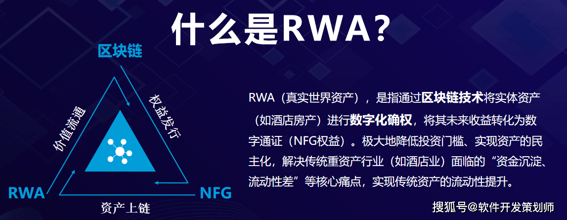 RWA,即“真实世界资产”(Real World Assets)的缩写,指的是将现实世界中的有形资产(如房地产、酒店、基础设施)或无形资产(如应收账款、收益权)通过区块链等数字化技术进行“代币化”处理,使其能够在数字平台上进行纷割、交易和流通。